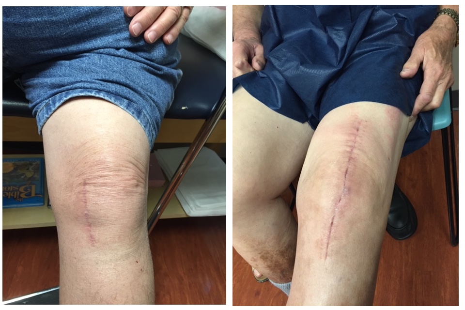 | Quadriceps muscle not cut, kneecap not dislocated | Quadriceps muscle cut and kneecap turned over and dislocated |